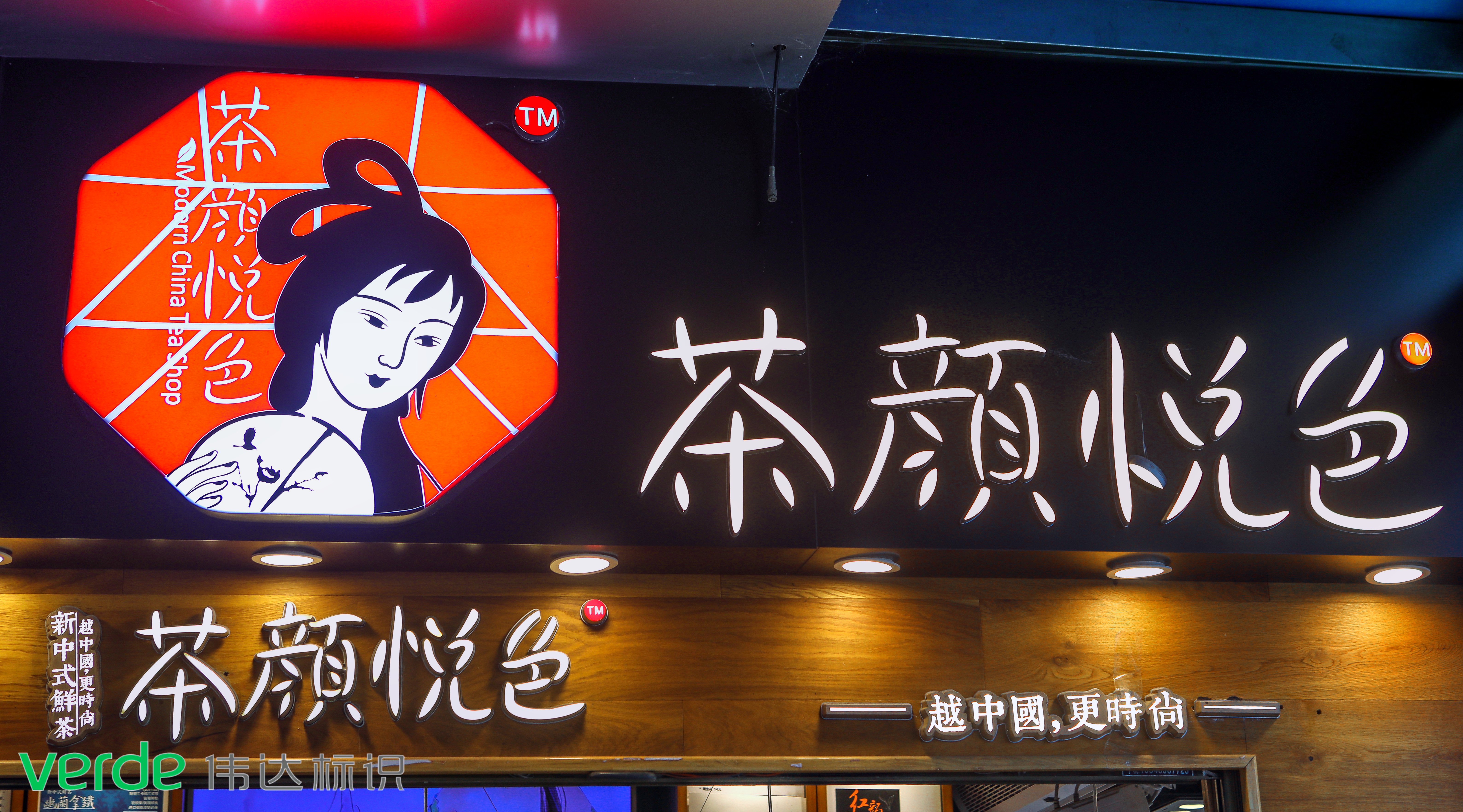2013年12月,茶顏悅色首家門(mén)店在司門(mén)口悄然開(kāi)張,品牌LOGO是由創(chuàng)始人呂良老師親自設(shè)計(jì)、偉達(dá)標(biāo)識(shí)承接制作。
